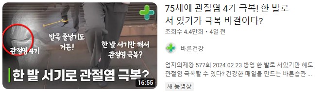 "강철 무릎"이란 말은 무릎 건강을 유지하고, 관절의 유연성과 힘을 높여주는 운동을 의미합니다. 무릎통증을 없애는데 돈 없이 강철 무릎을 만들 수 있는 방법이 있습니다. 특히 한발로 서는 운동은 균형 감각을 향상시키고, 무릎 주변의 근육을 강화하는 데 효과적입니다. 이 글에서는 한 발로 서기로 강철 무릎 만드는 방법을 알아보겠습니다. 더 자세한 내용은 아래 영상을 확인해 보세요.